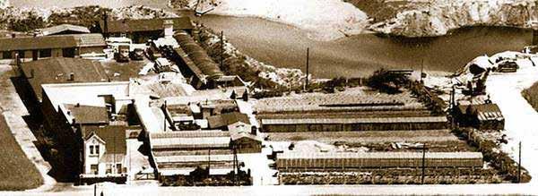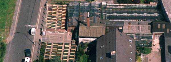 Auf der historischen Luftaufnahme oben erkennt man etwa in der Mitte unseren ‚Arbeitsraum‘ (das kleine Haus mit dem Kamin), bis heute der Dreh- und Angelpunkt unserer Firma. Er dient uns nach wie vor für alle anfallenden Innenarbeiten und als Garage für einen Teil unserer Friedhofsfahrzeuge.