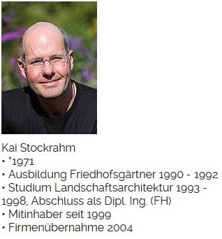 Die Geschichte unserer Firma reicht bis ins Jahr 1933 zurück – und jede Generation prägte die Firma auf ihre Weise. Begonnen als Zierpflanzen-, Gemüse- und Marktbetrieb unter Wilhelm und Maria Stockrahm, wandelte sie sich durch Manfred Stockrahm zur Friedhofsgärtnerei und wird jetzt von Kai Stockrahm als moderner Dienstleistungsbetrieb weitergeführt.